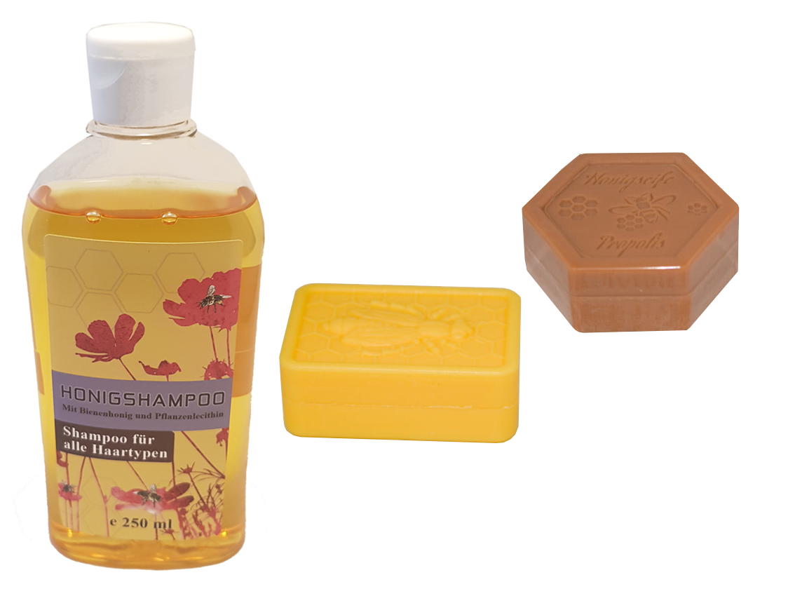 | Inhaltsstoffe | Honig- Lanolin-Seife, Honigseife mit Propolis, Honigshampoo |